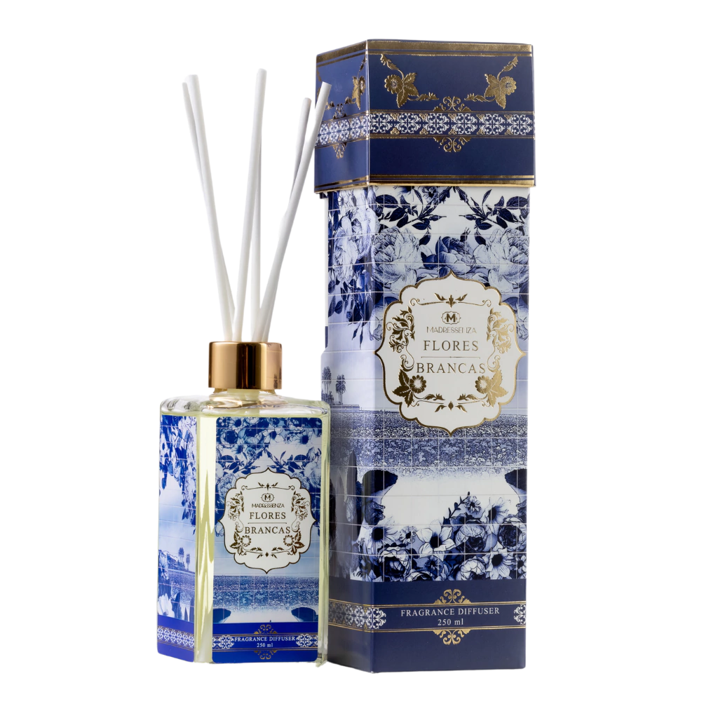 Dos campos verdes radiantes, destaca-se pelo brilho puro e exuberante de brancas pétalas sedosas. Não há beleza tão especial como das brancas flores que sobem pela colina ao sol nascente. A nova coleção Flores Brancas, por Madressenza, é tradução da própria luz, refletindo paz e harmonia. Das pombalinas arquiteturas portuguesas, mesclam-se as simetrias perfeitas para aromas sublimes. Flores Brancas é a insinuação pura de fragrâncias clássicas.